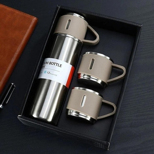 12 Saat Sıcak & Soğuk Tutma Garantili – 500 ml 304 Paslanmaz Çelik Termos Seti (3 Bardaklı)