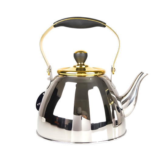 2 Litre Alman Çelik Çaydanlık – Şık Sarı Kulplu, Filtreli, İndüksiyon Uyumlu
