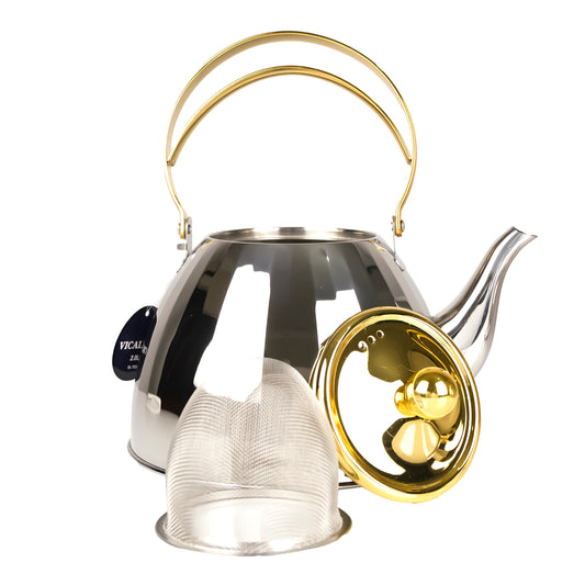 Premium Alman Çelik Çaydanlık – 2.5 + 1 Litre, Çay Filtresi ve İndüksiyon Tabanlı