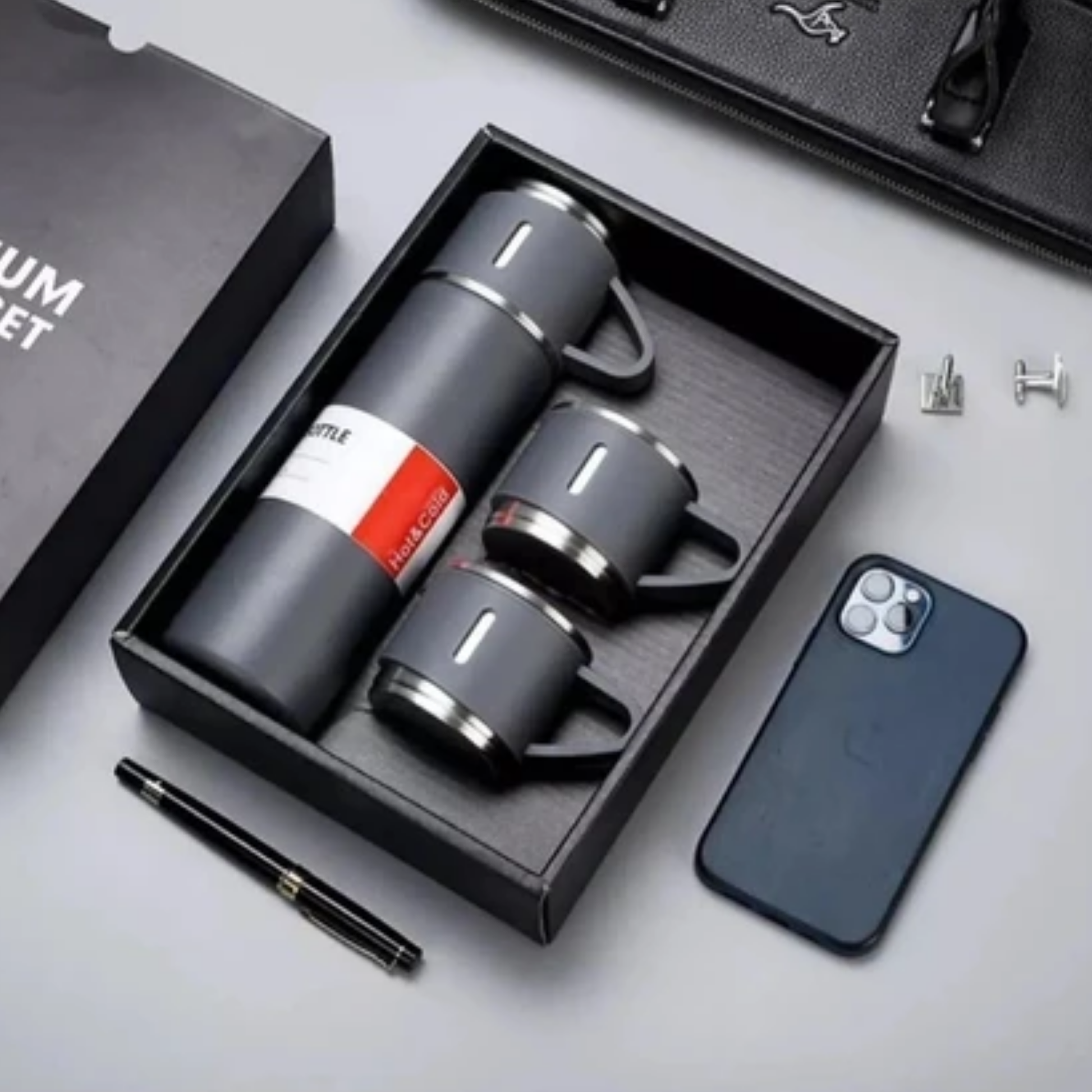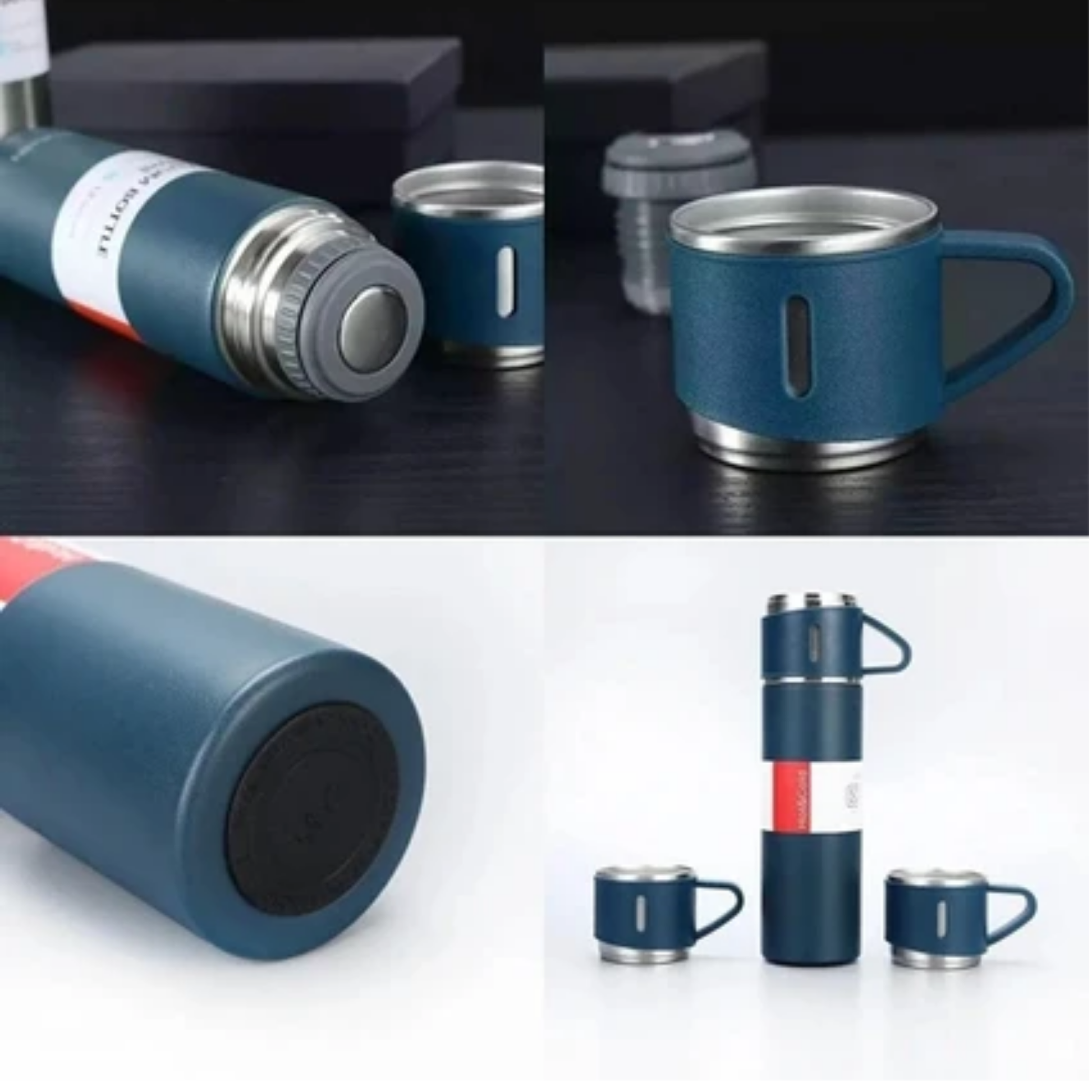 Ürün, yanında gelen 3 adet bardak ile birlikte ailecek veya arkadaşlarınızla rahatça kullanılabilir. İster ofiste, ister seyahatte, ister kamp ve doğa yürüyüşlerinde yanınızdan ayırmayacağınız bu termos seti, hem sağlıklı hem de kullanışlı bir çözüm sunar.