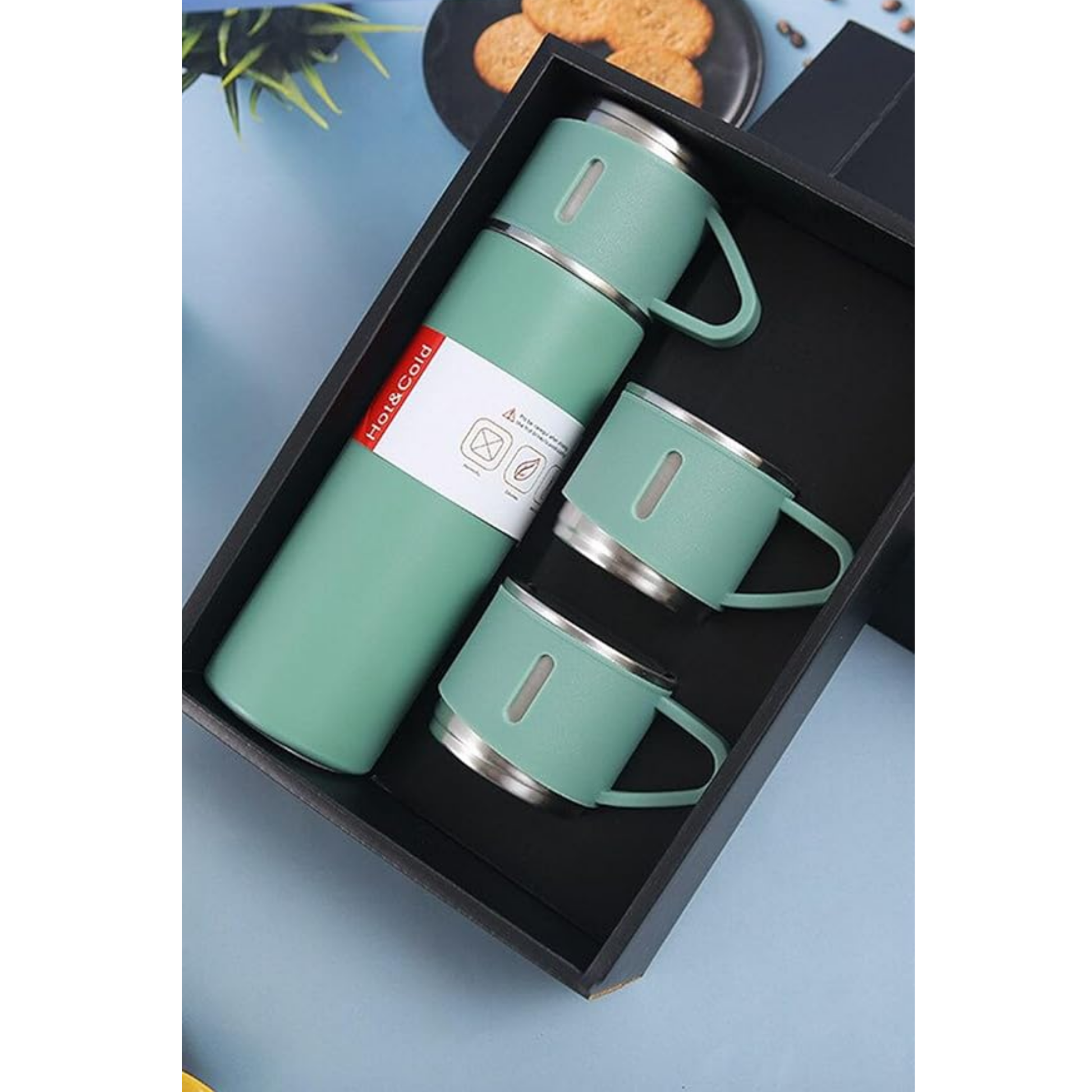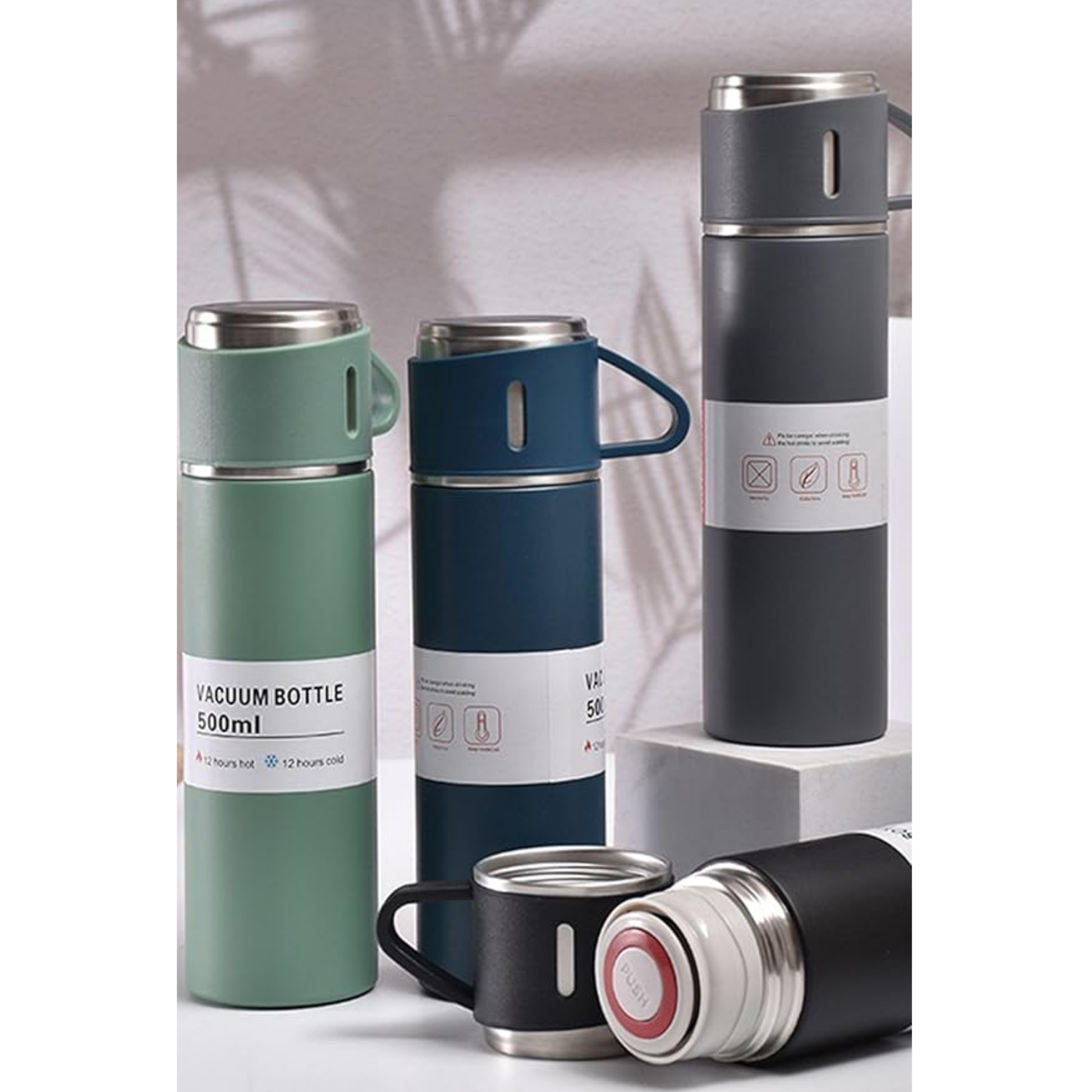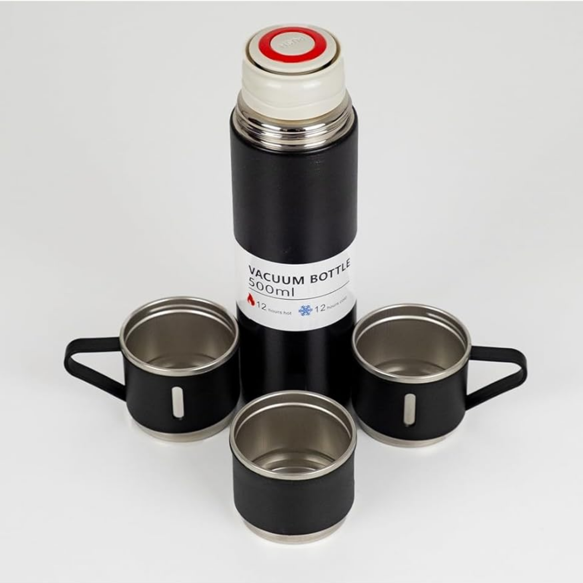 12 Saat Sıcak & Soğuk Tutma Garantili – 500 ml 304 Paslanmaz Çelik Termos Seti (3 Bardaklı)