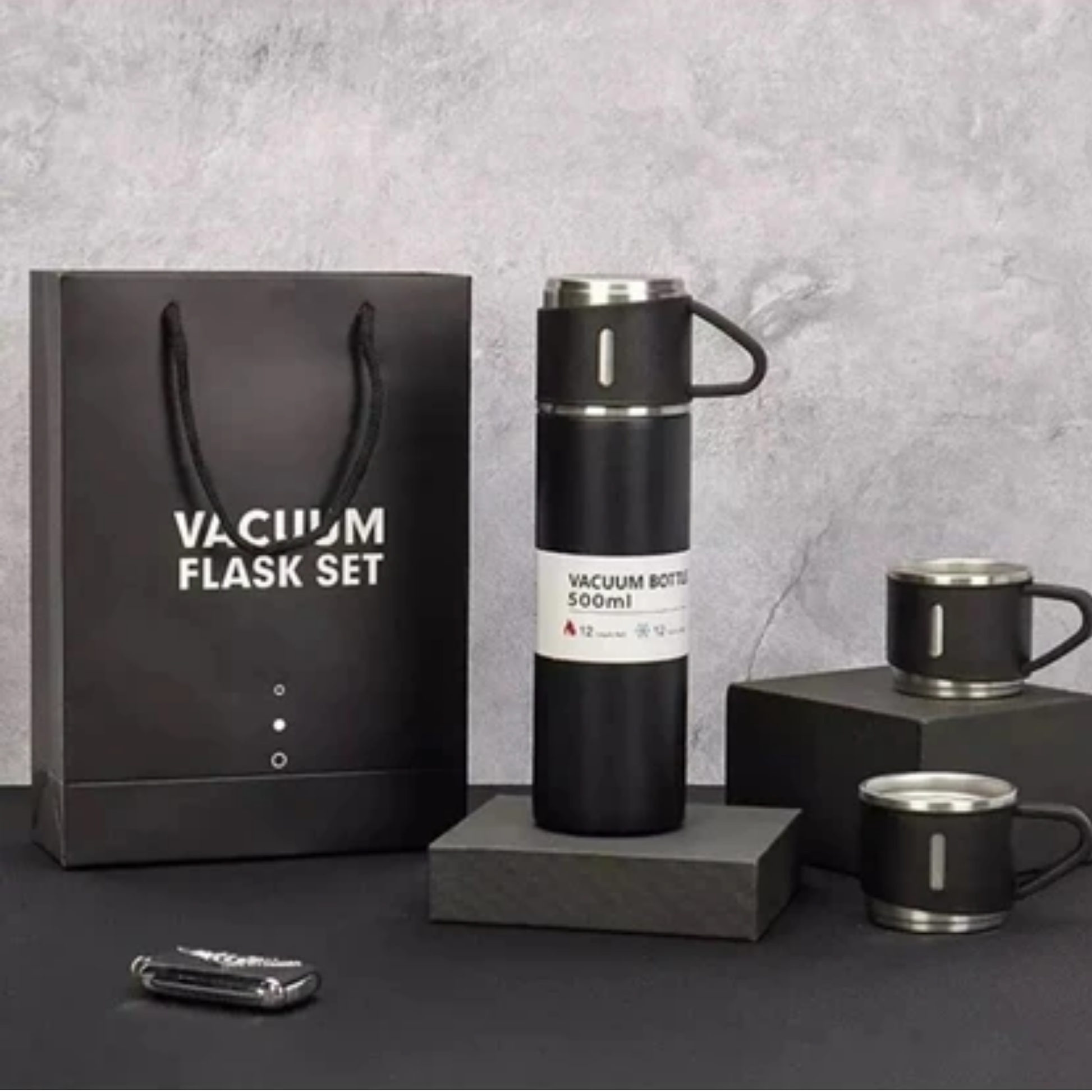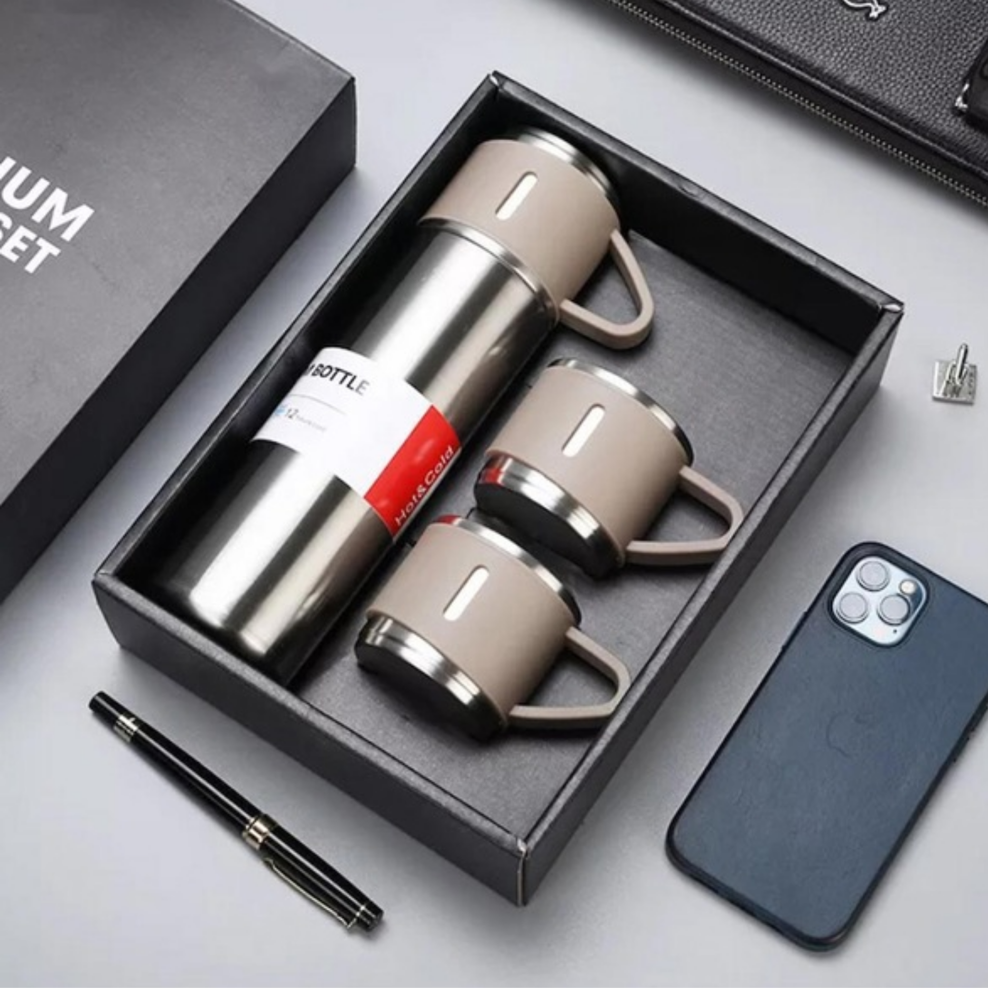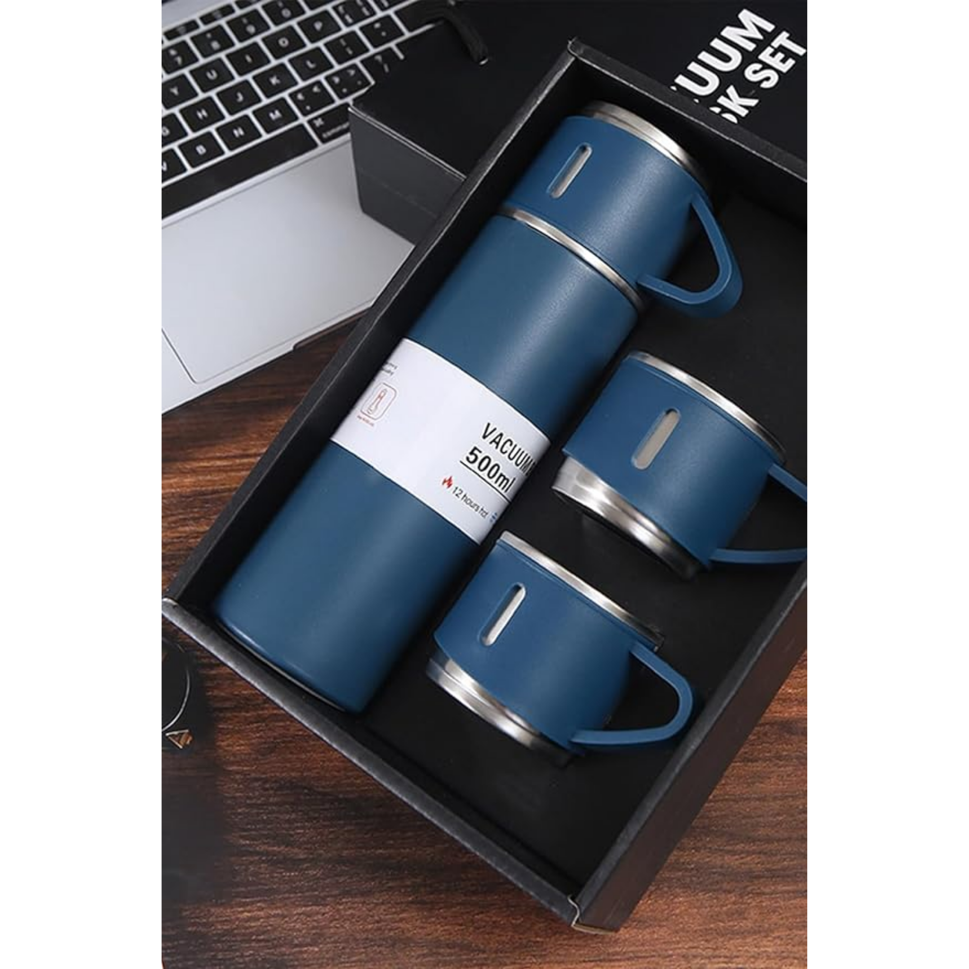 12 Saat Sıcak & Soğuk Tutma Garantili – 500 ml 304 Paslanmaz Çelik Termos Seti (3 Bardaklı)