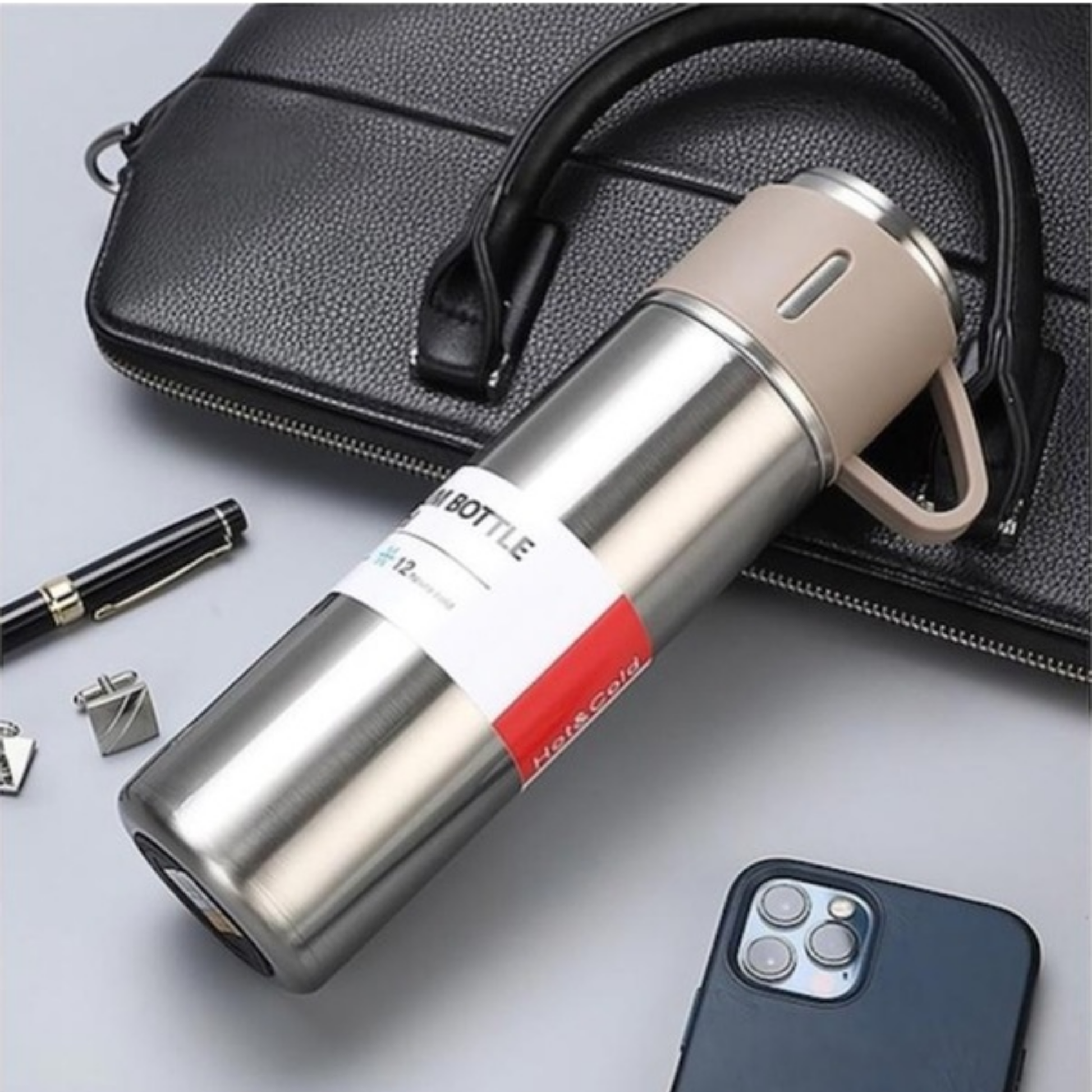 Günlük kullanımda pratiklik ve şıklığı bir arada sunan 500 ml paslanmaz çelik termos seti, içeceklerinizi 12 saat boyunca sıcak veya soğuk tutar. 304 kalite paslanmaz çelik malzemeden üretilen termos, dayanıklı yapısıyla uzun ömürlü kullanım sağlar.