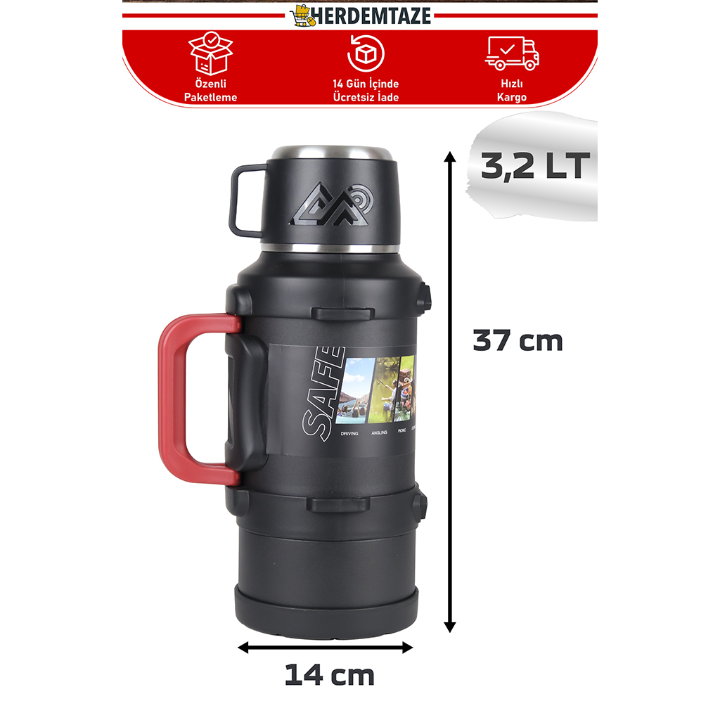 Büyük Kapasiteli 3+ Litre 316 Paslanmaz Termos – Çift Katmanlı, Kamp ve Seyahat Dostu, 24 Saat Sıcak / 48 Saat Soğuk Koruma Garantili