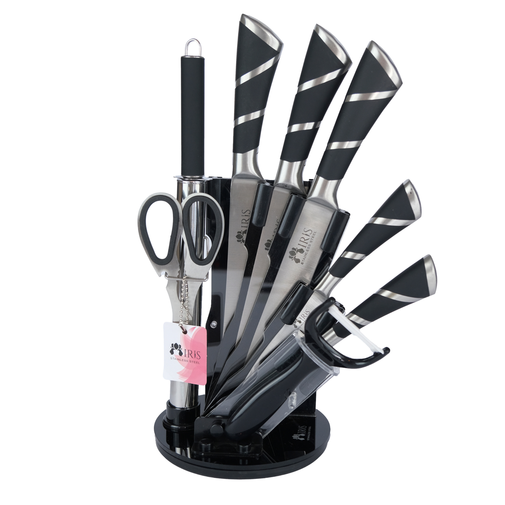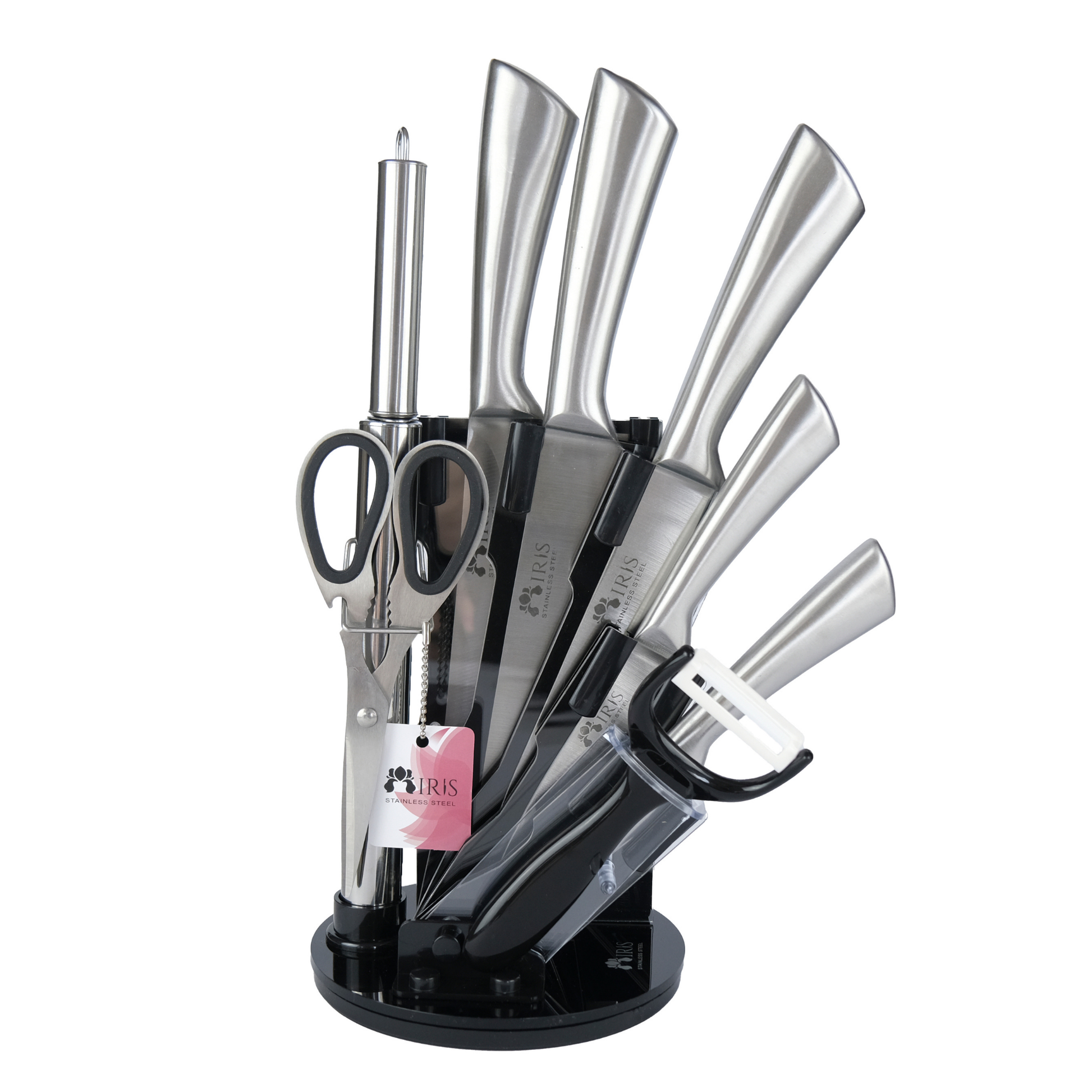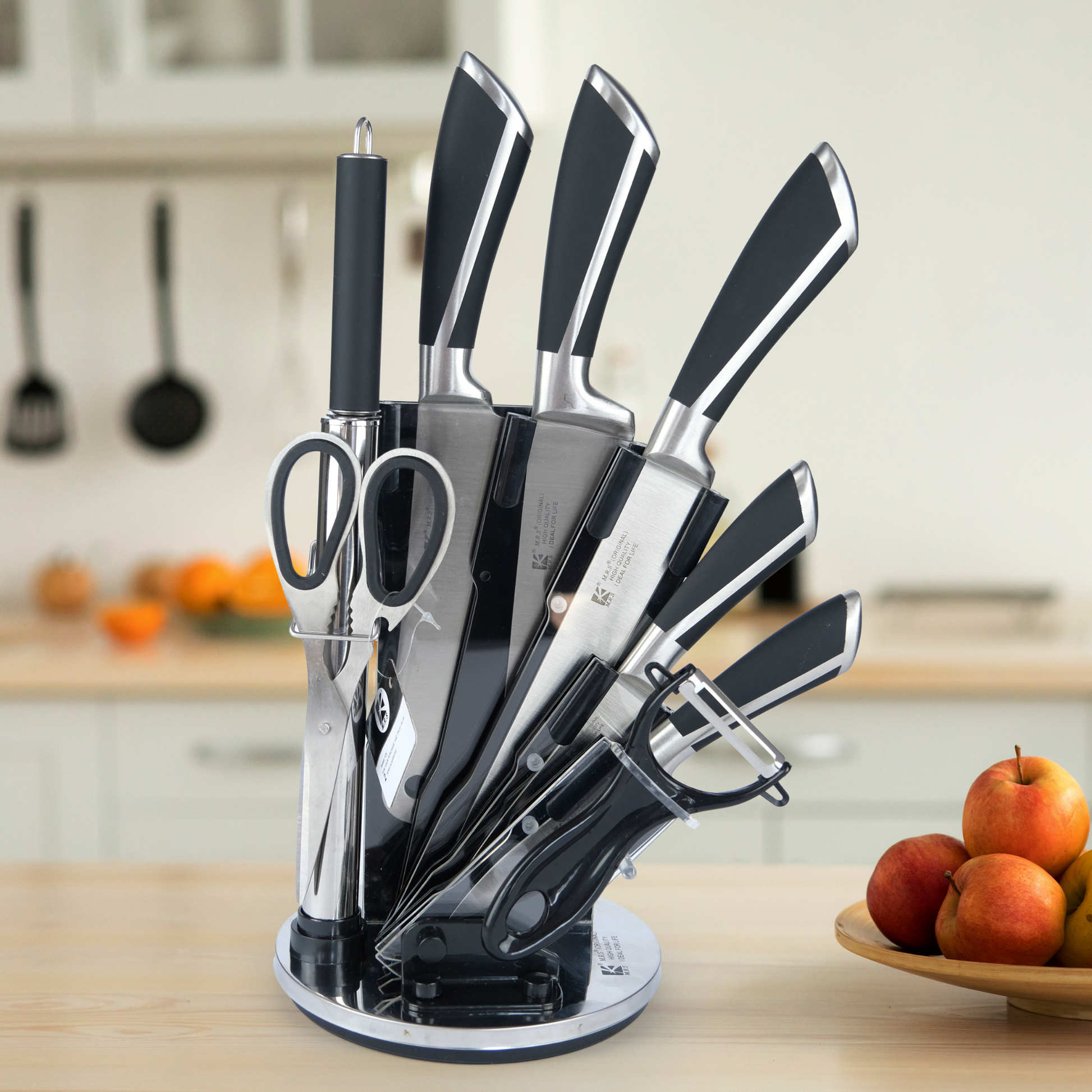 Profesyonel 9 Parça Bıçak Seti – 360° Dönen Stant ile beraber Üstün Keskinlik ve Şık Tasarım Bir Arada